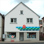Fassadengestaltung Quellenapotheke: Ist-Zustand, Entwurf und fertige Fassade